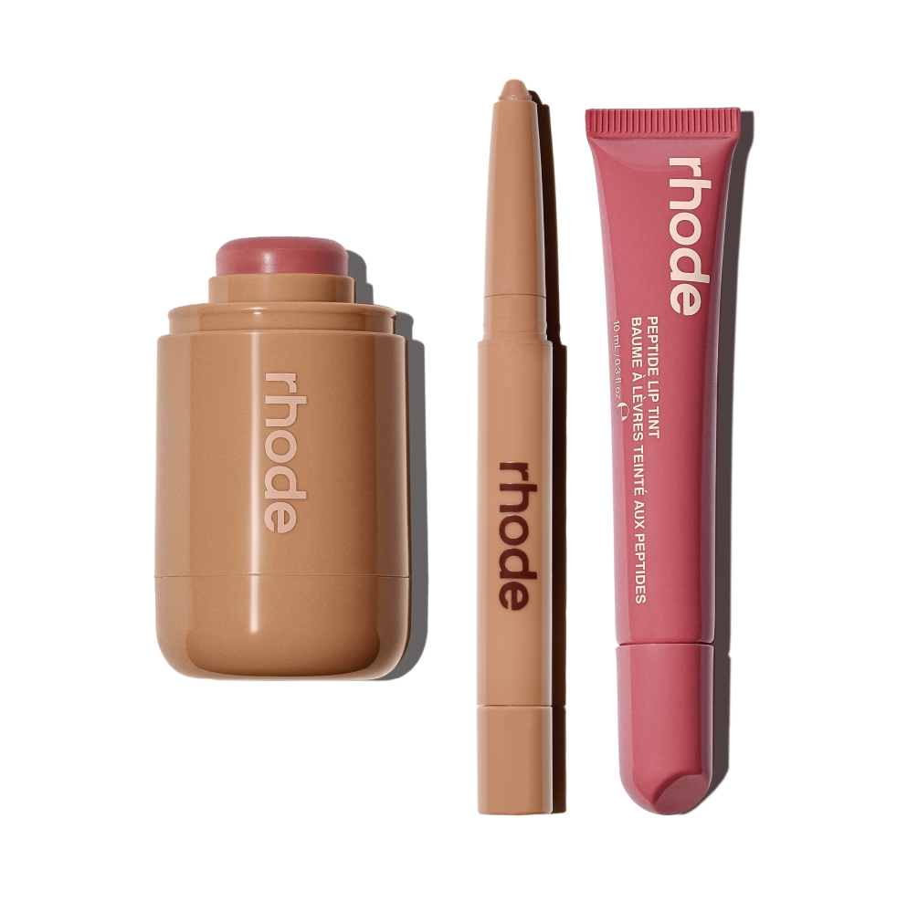 Includes 3 full size products: Pocket Blush in Tan Line, Peptide Lip Shape in Twist, and Peptide Lip Tint in Salty Tan.